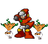 Along with his explosive weapons, Crashman is also one of the most agile members of the team.  Wearing a light but adequate armor, he can dodge and leap over most attacks with ease.  Of course, with the light weight, he is susceptible to high winds, which can cause heavy damage after causing impacts.